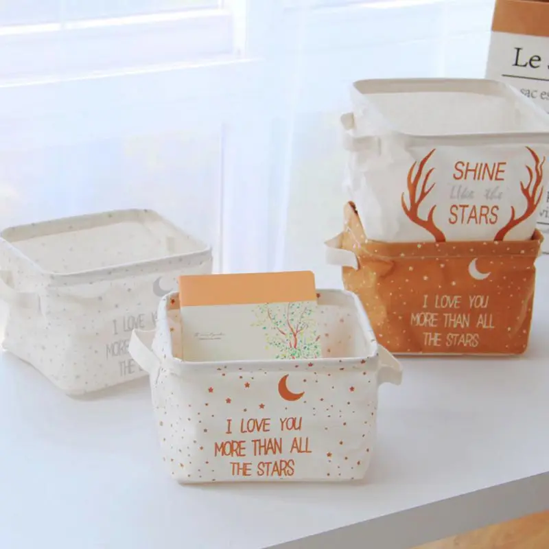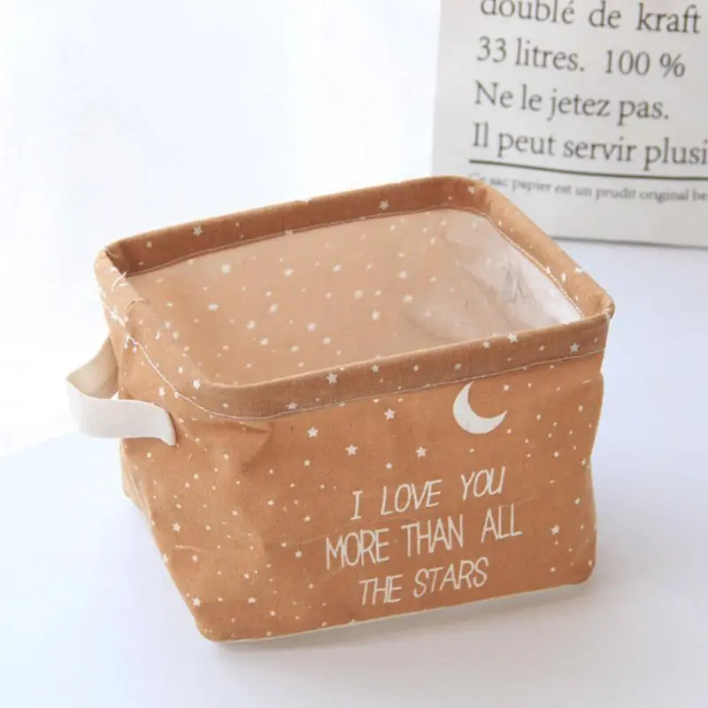 Hot deal Cotton And linen Storage Box Brown Bottom Star Pattern Home Garden Home Storage Organization Storag