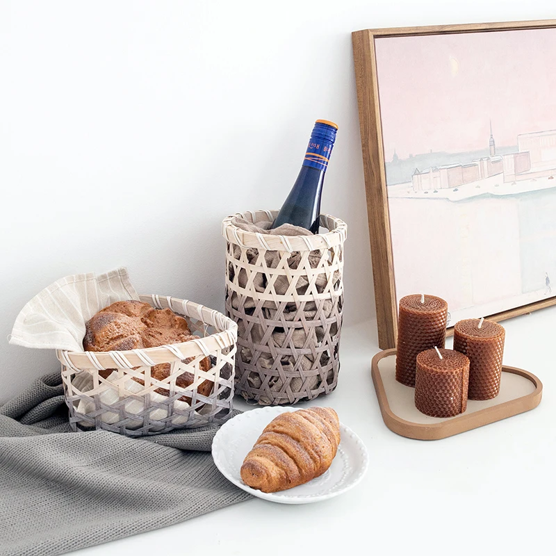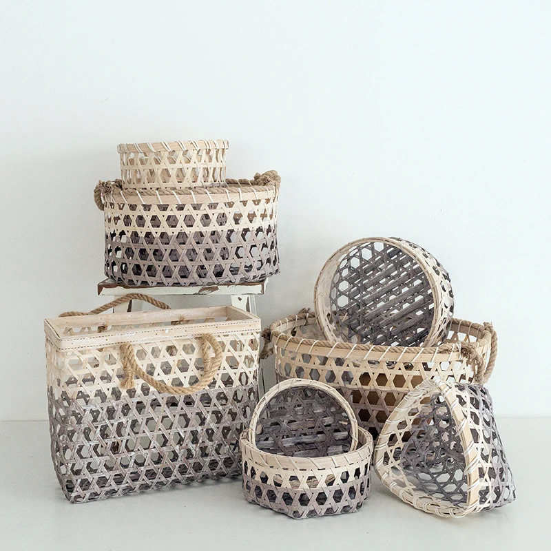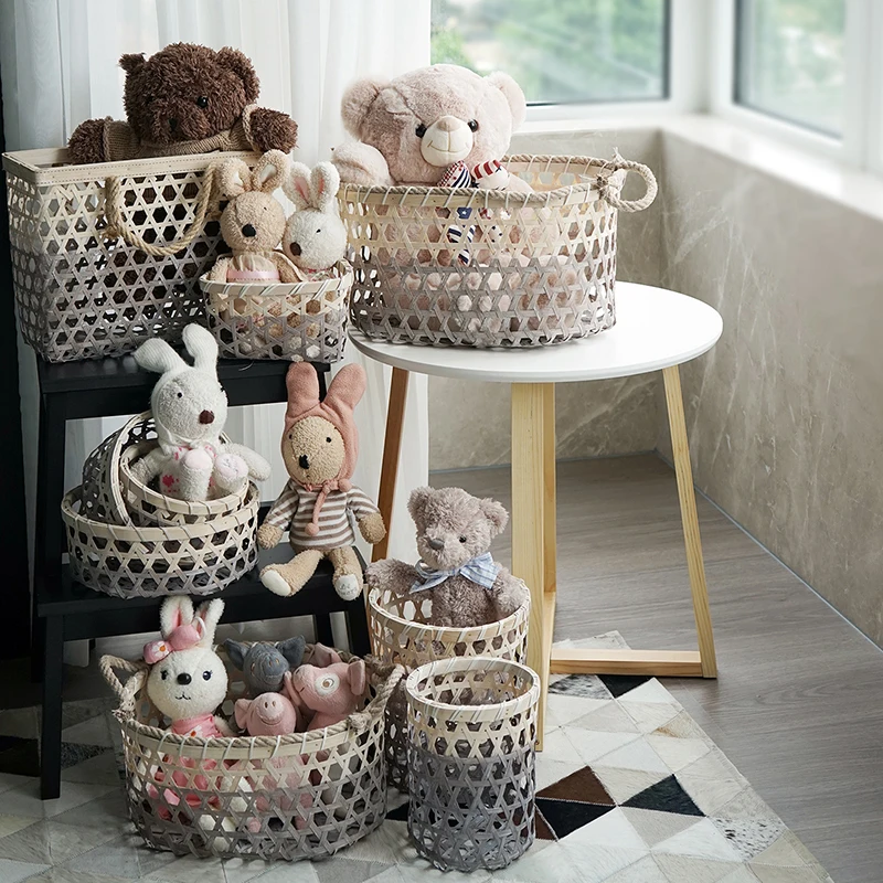 Gray Color Home Storage Box Bamboo Basket for Table Room Bathroom Storage Baskets for Kids Room Hom