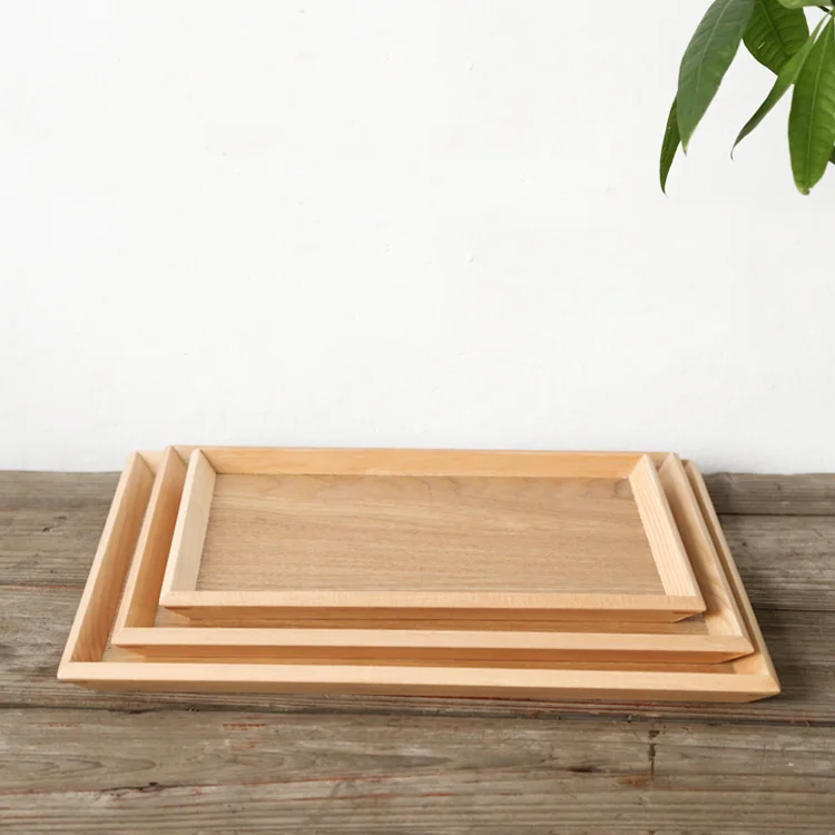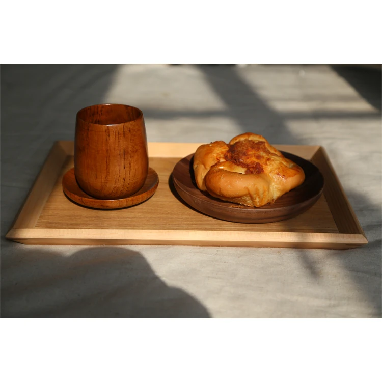 Japan Style Creative Tea Cup Tray Bread Fruit Cutlery Wooden Serving Tray 2 Pieces Wood Rectangular Food Trays Storage Trays