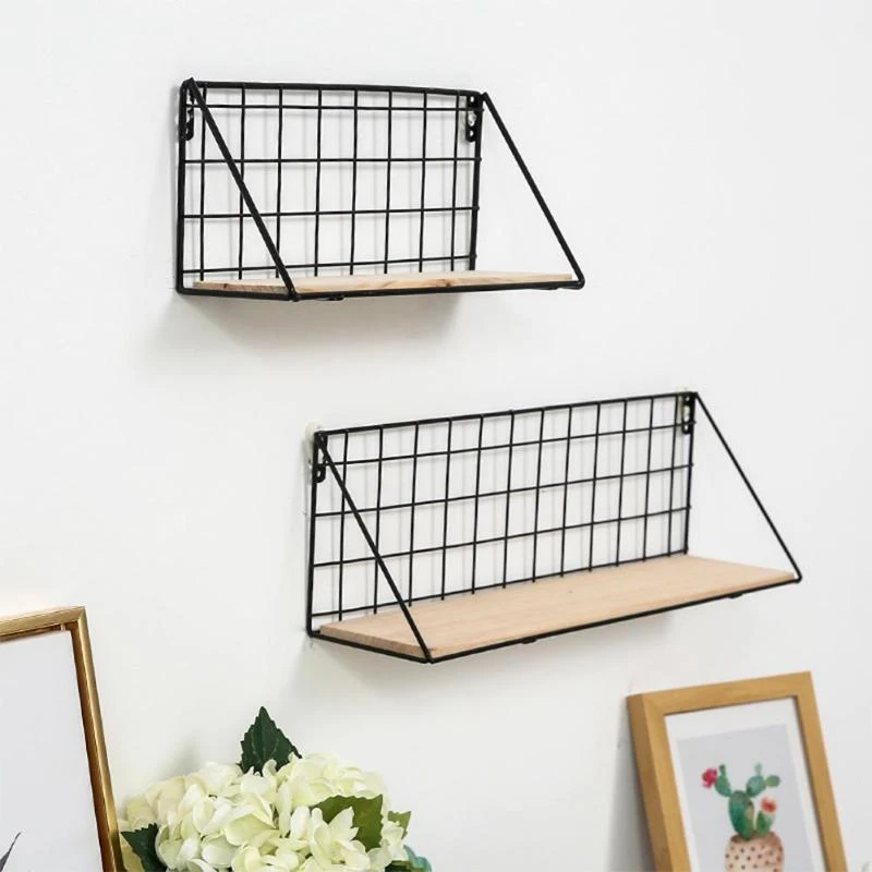 2Pcs Wooden Iron Wall Shelf Wall Mounted Storage Rack Organization for Kitchen Bedroom Home Decor K