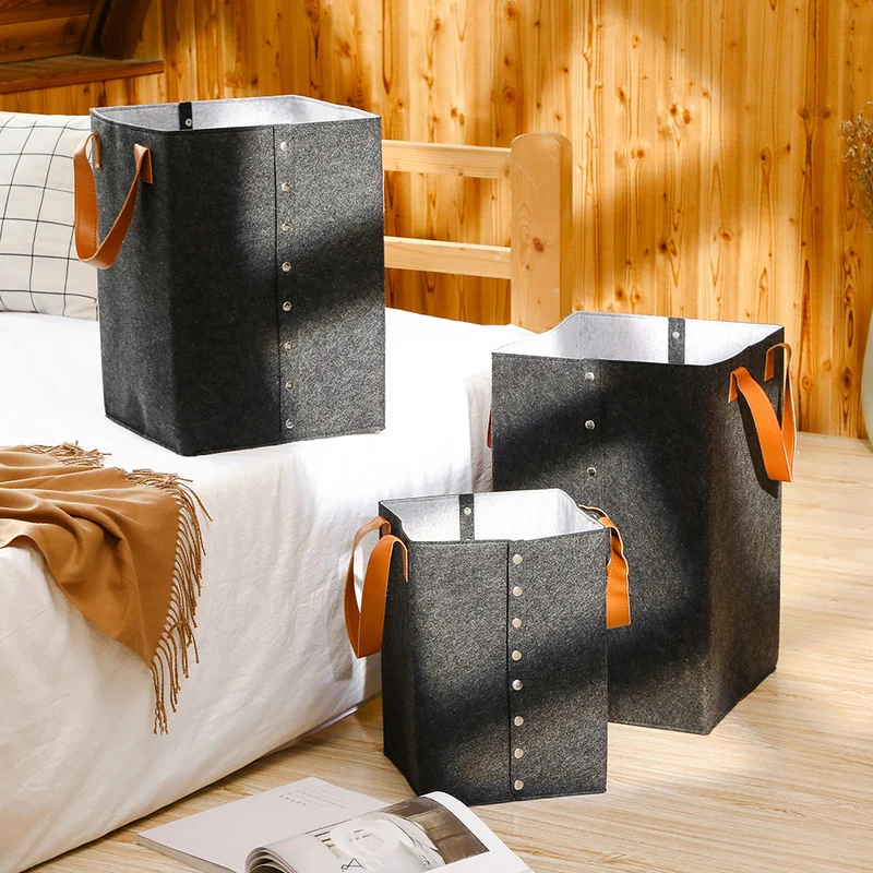 Best product Felt Laundry Basket Folding Dirty Washing Clothes Storage Hamper Eco-Friendly PU Handle Basket Bag